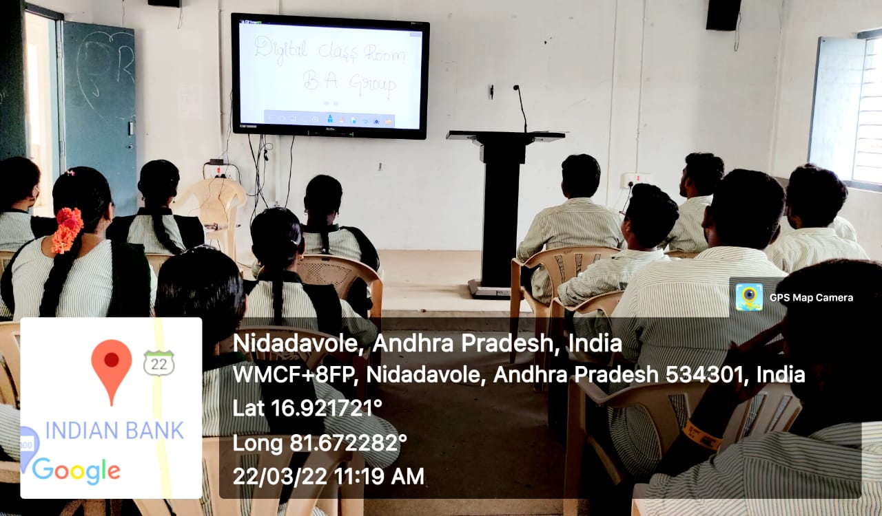 The S.V.R.K GDC,Nidadavole is running ahead of other colleges by upgrading our classrooms by introducing digital technology. We have three digital classrooms fully equipped with Wi-Fi facility. The digital education system enables students to analyze what they need to know to be able to search and utilize online resources.
