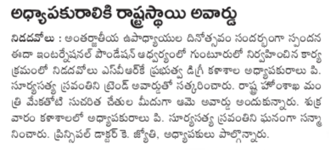 Published in Andhra Jyothi
