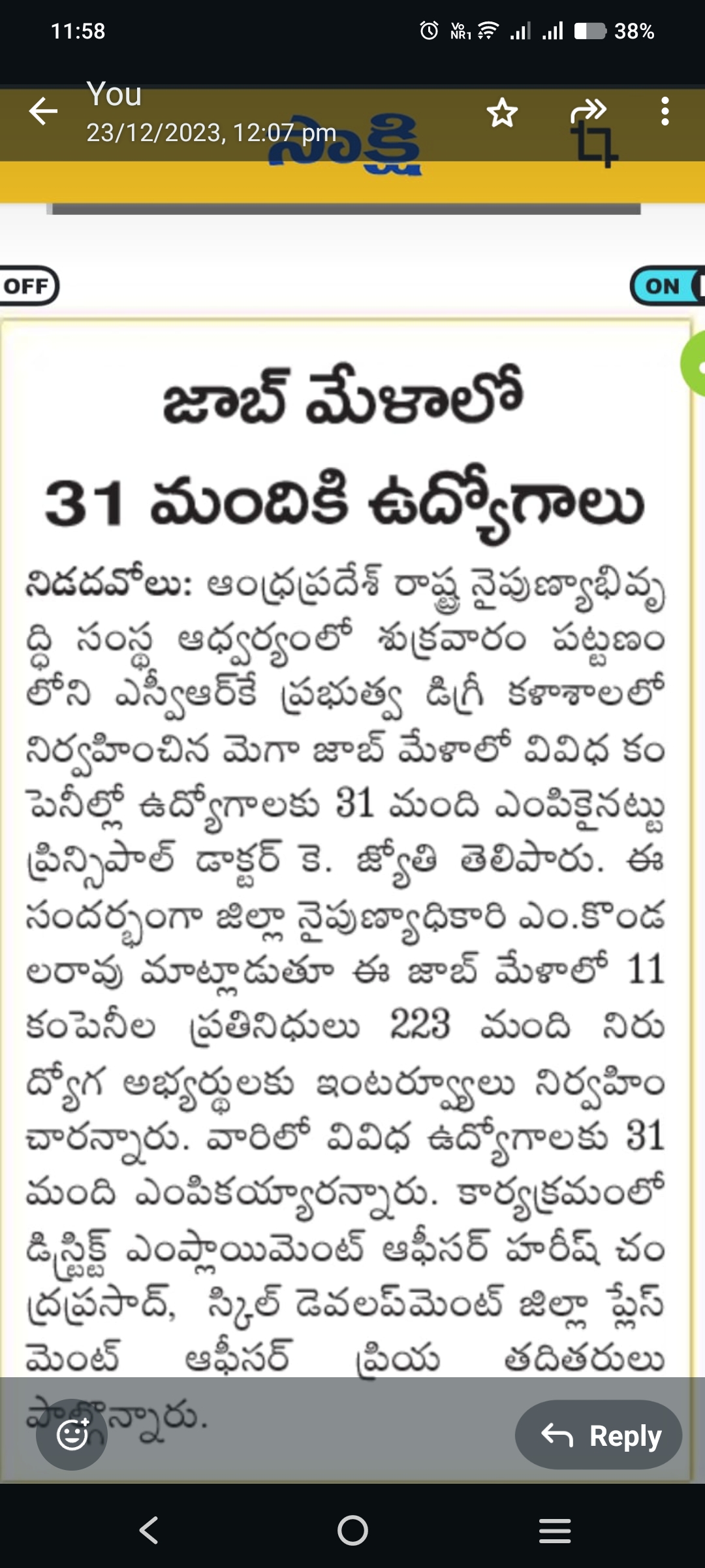 Published in Andhra Jyothy